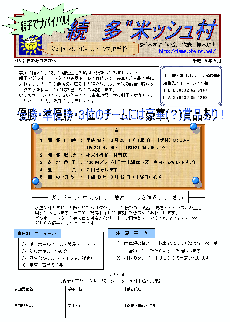 遅ればせながら、10月28日開催した多”米ッシュ村の案内を掲載します。