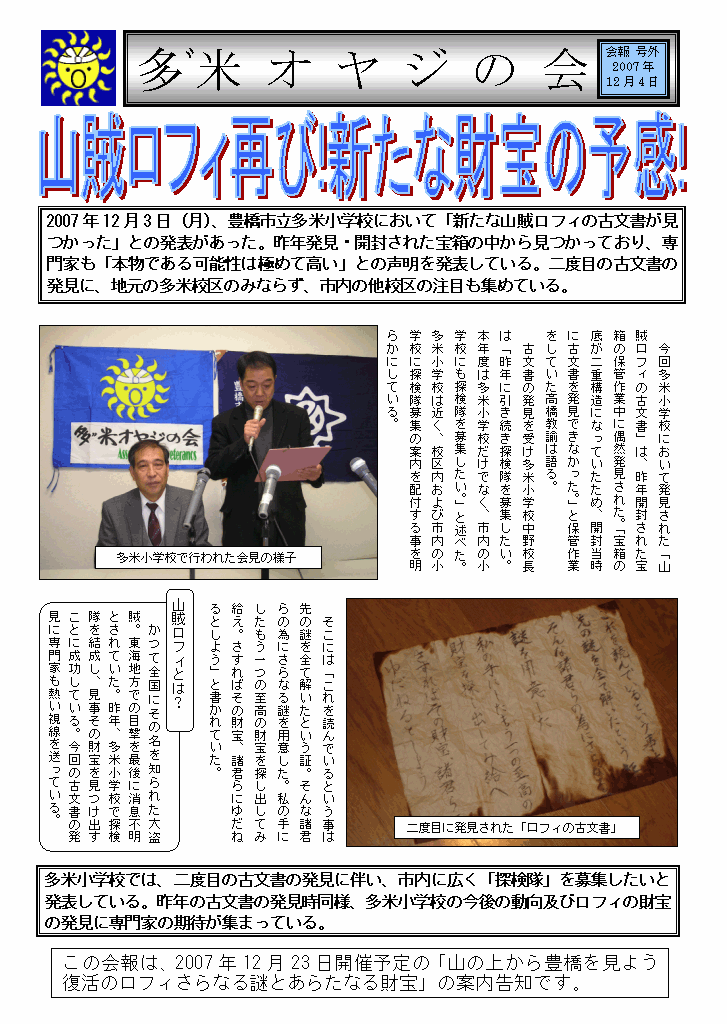 「山の上から豊橋を見よう 復活のロフィさらなる謎とあらたなる財宝」の案内告知です。