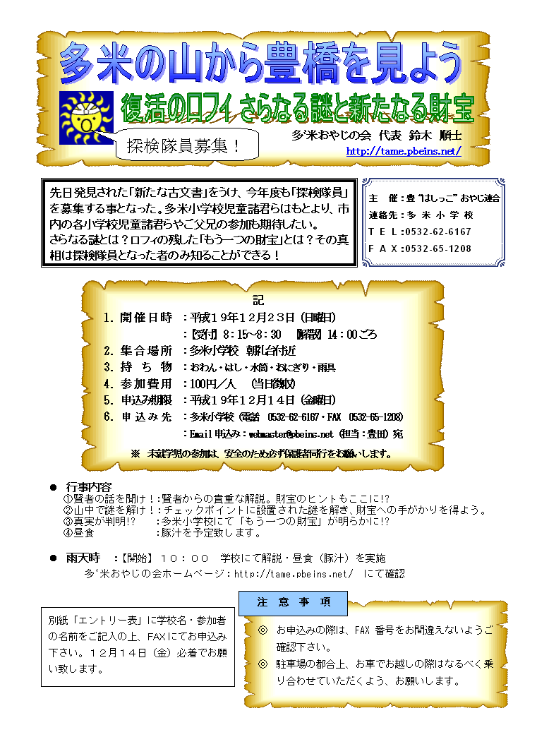 12月23日の「多米の山から豊橋を見よう」の参加者募集案内です。