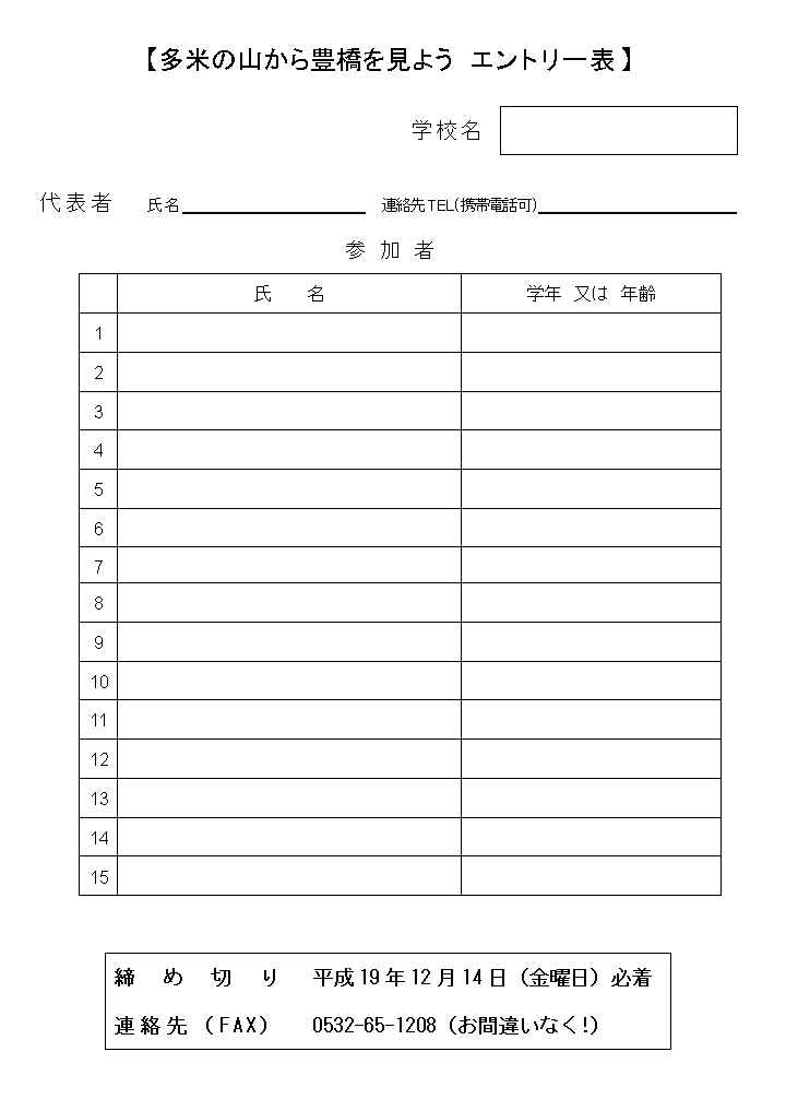 12月23日の「山の上から豊橋を見よう」のエントリー表です。
